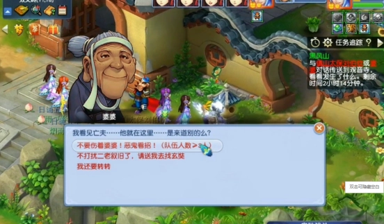3、所有的单人任务做完之后,开始组队,这个时候有两个选择,杀恶虎跟鬼怪,这里我们不要猛虎,一定要点击婆婆杀这个鬼怪,因为这个奖励更好一点。