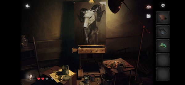 15.到房间中间的画像前泼松节油,然后根据提示依次用刷子画蝙蝠、羊、蛇、青蛙。